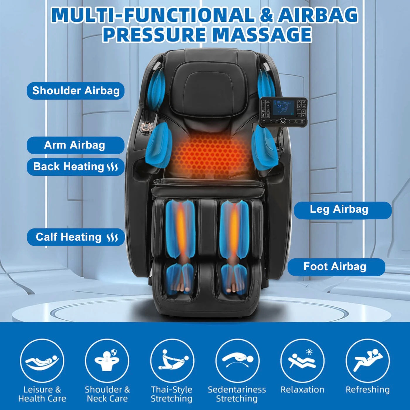 Zero Gravity Full Body Massage Chair with SL-Track Technology, Back & Calf Heating, Foot Rollers, and Adjustable Recline,Full Body Airbags Compression Massage